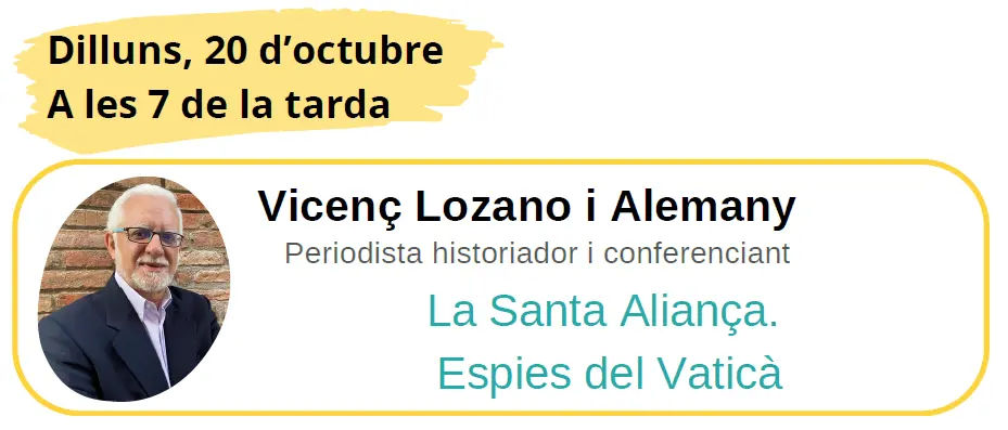 Vicenç Lozano Alemany, periodista historiador i conferenciant, presenta la xerrada, "La Santa Aliança. Espies al Vaticà".