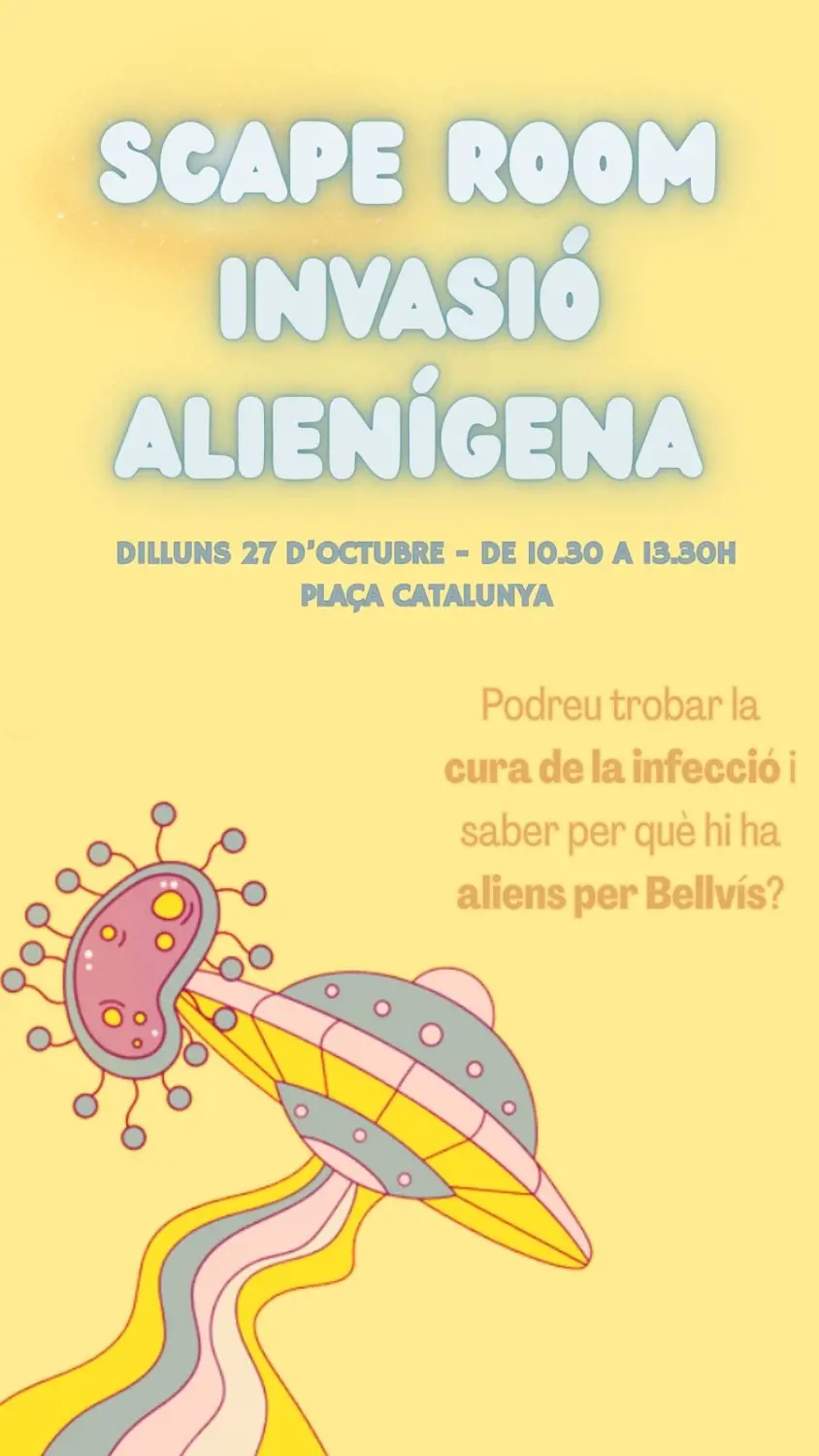 L'Ajuntament convida a tots els infants que vulgui participar en l'Escape Room organitzat per dilluns dia 27 d'octubre durant el matí. Emocionant escape room exterior que us farà gaudir. Amb tauletes i altaveus per cada grup. Enigmes, proves robotitzades, attrezzo i plat volador de 5 metres!
