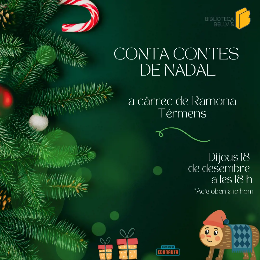 La Biblioteca municipal convida a totes les famílies a la sessió de contes de Nadal que farà la Ramona Térmens el proper dijous 18 de desembre a les 18 h.