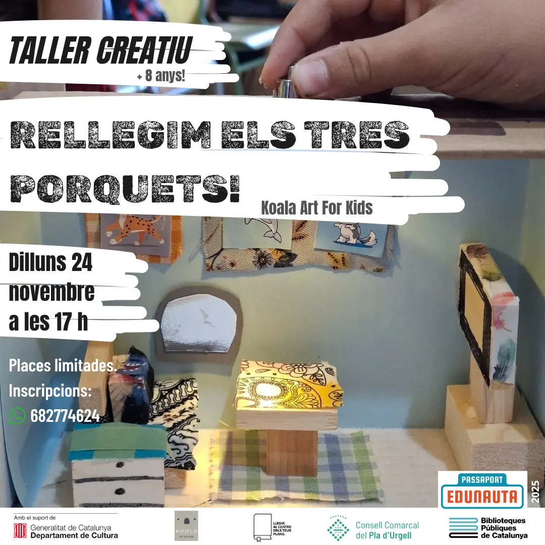 La Biblioteca municipal convida als infants a partir de 8 anys al taller artístic “Rellegim els tres porquets” que anirà a càrrec de Koala Art for Kids.