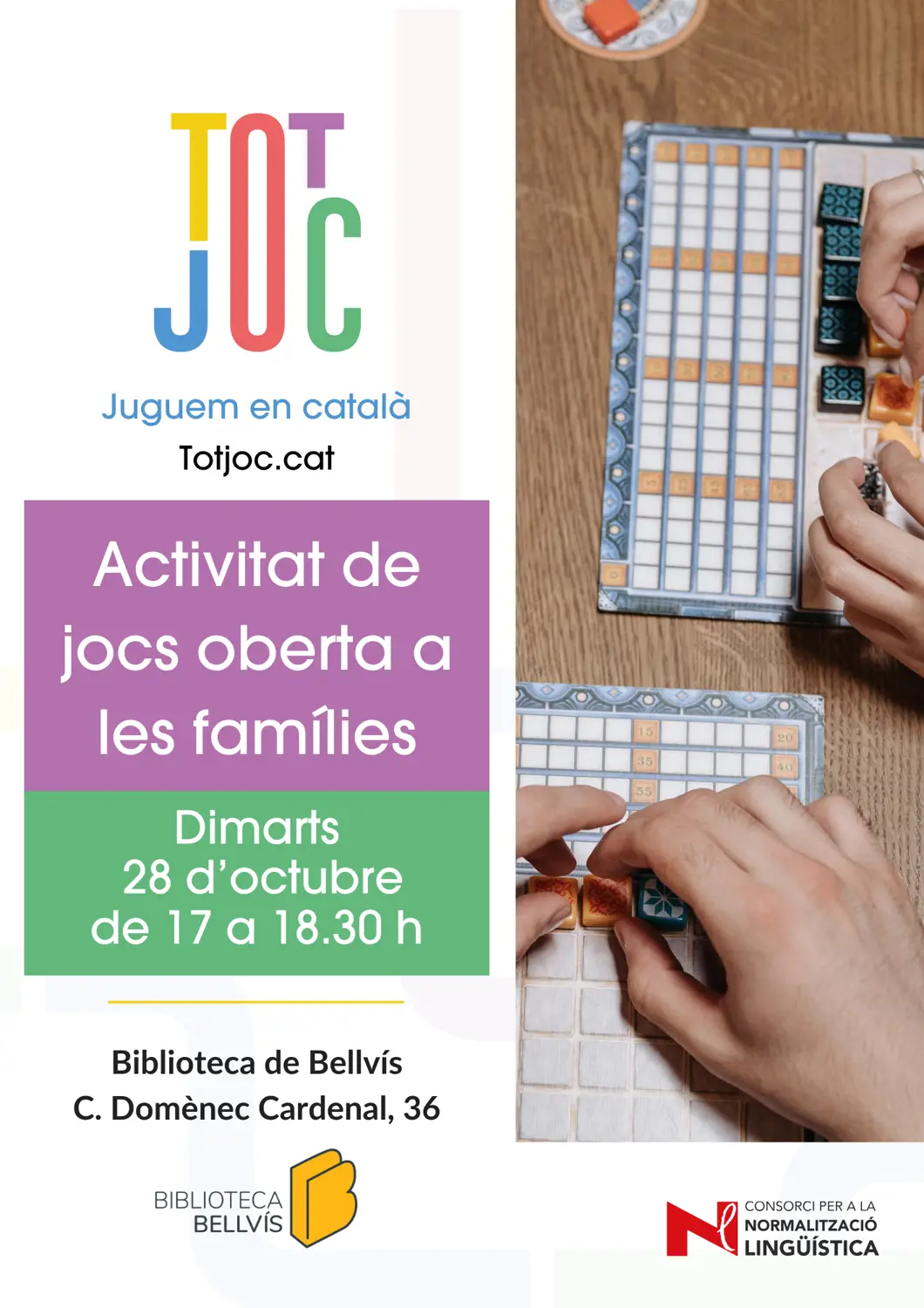 La Biblioteca municipal convida a les famílies a l’activitat de jocs de taula en català que es farà el proper dimarts 28 d’octubre per la tarda.