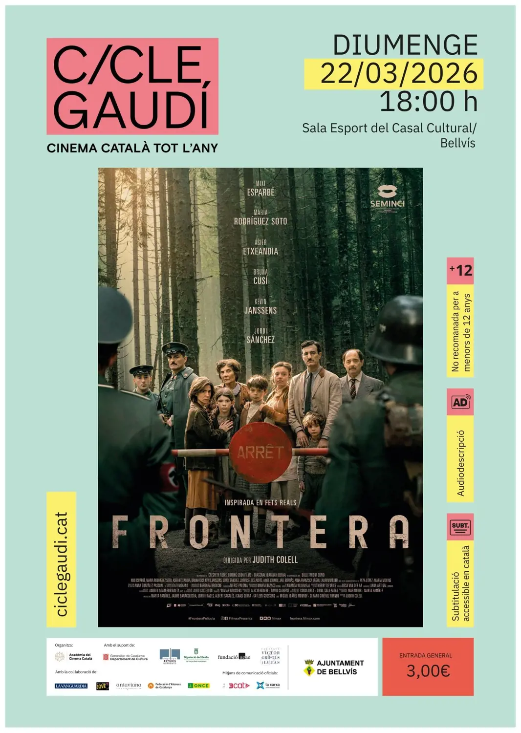L’Ajuntament us convida diumenge 22 de març al Cicle Gaudí amb la pel·lícula: Frontera, guanyadora dels premis Gaudí. Al Casal Cultural Sebastià Serrano a les 6 de la tarda, entrada 3,00 €.