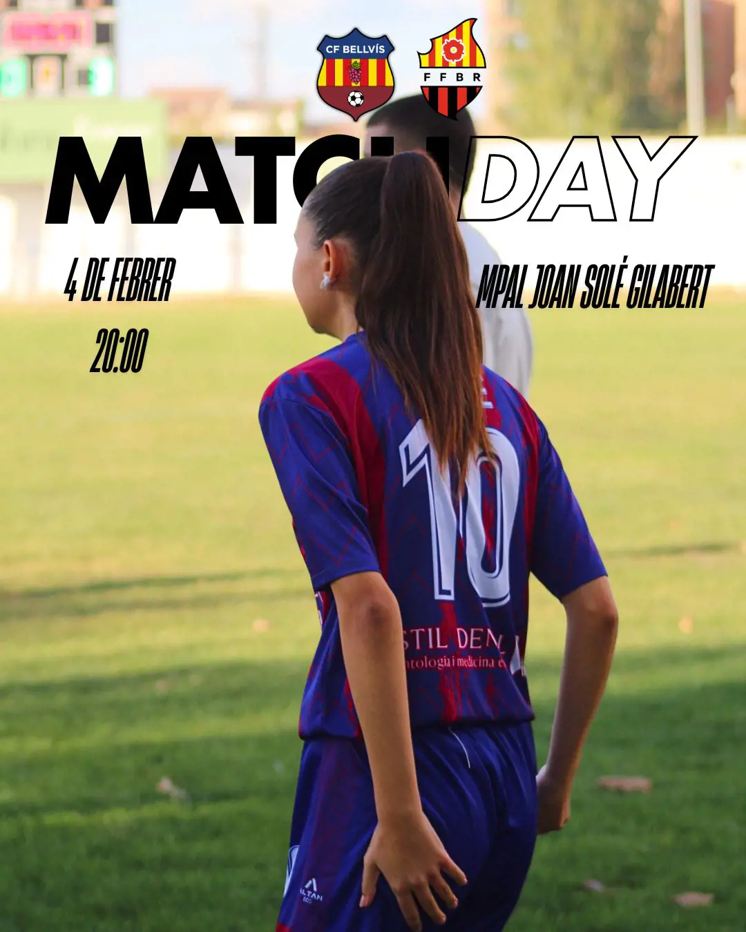 El Club de Futbol Bellvís us convida al partit del femení contra l'Escola Futbol Base Reus, que tindrà lloc avui, a les 8 del vespre al municipal Joan Solé Gilabert.