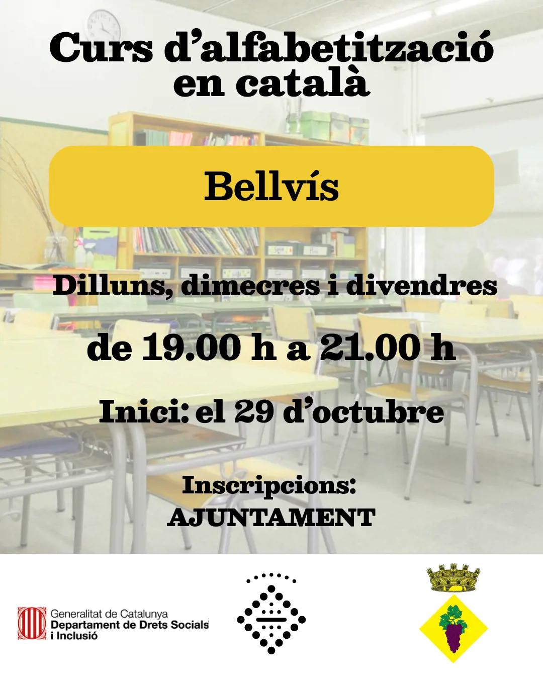 El proper dimecres dia 29 d'octubre donarà inici un nou curs de català per a nouvinguts que tindrà lloc els dilluns, dimecres i divendres de 19.00h a 21.00h al casal cultural fins el 19 de desembre.