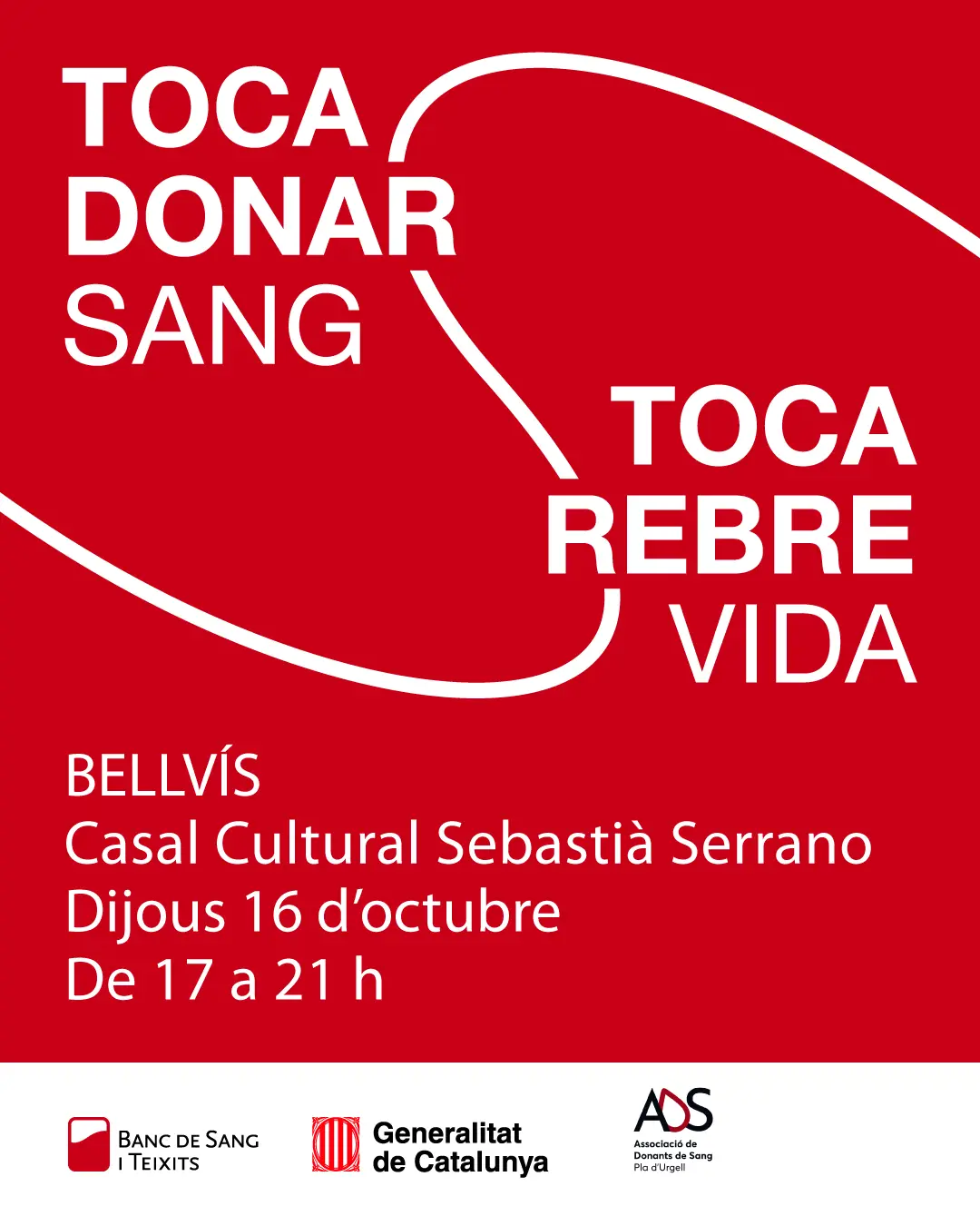 Es recorda que demà dijous, de 17.00h a 21.00h a la Sala 1 d'octubre del Casal Cultural hi ha campanya de donació de sang.