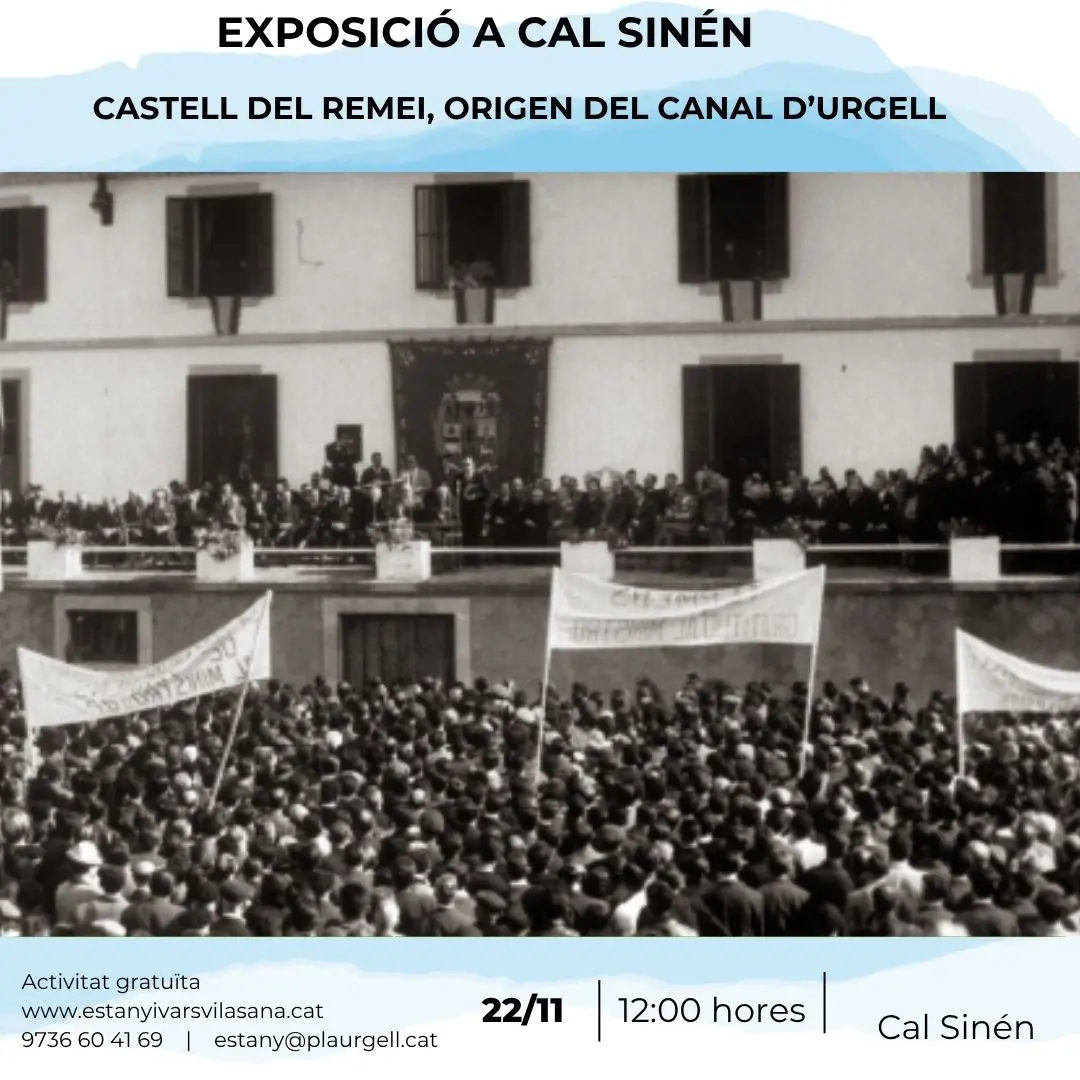 La inauguració de l'exposició "Castell del Remei, origen del Canal d'Urgell" tindrà lloc el dissabte 22 de novembre a les 12:00 hores a la sala d'exposicions de Cal Sinén.