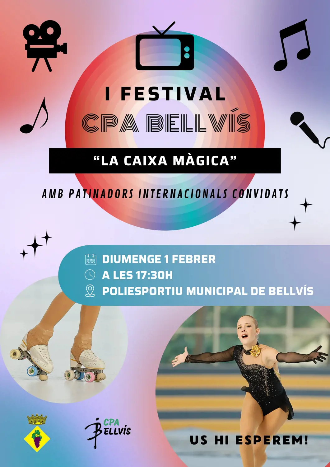 Us informem que el pròxim diumenge 1 de febrer per la tarda tindrà lloc el primer festival del Club Patinatge Artístic Bellvís. Durant la jornada podreu gaudir d’actuacions de diferents patinadors i equips de competició, alguns d’ells de nivell nacional i internacional!