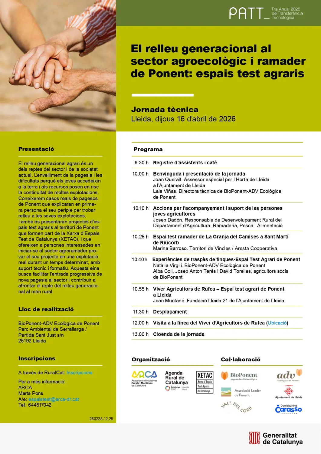 🌾 També descobrirem projectes d’espais test agraris del territori, integrats a la Xarxa d’Espais Test de Catalunya (XETAC), que permeten a noves persones provar el seu projecte en una explotació real amb suport tècnic i formatiu.