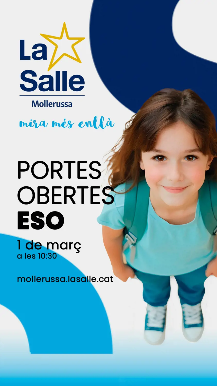 La Salle Mollerussa organitza la Jornada de Portes Obertes d'ESO el proper diumenge 1 de març a dos quarts d’onze del matí (10.30 h).