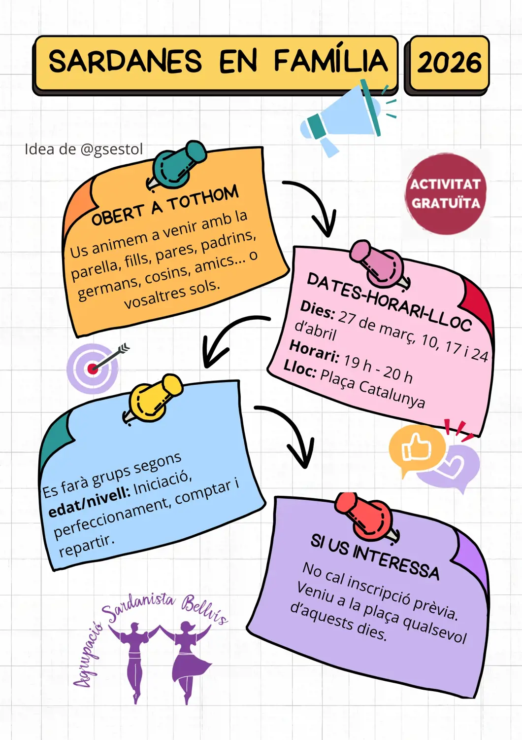 L'Agrupació sardanista de Bellvís anima a tothom a participar al curs de sardanes d'avui divendres de 7 a 8 de la tarda a la Plaça Catalunya.