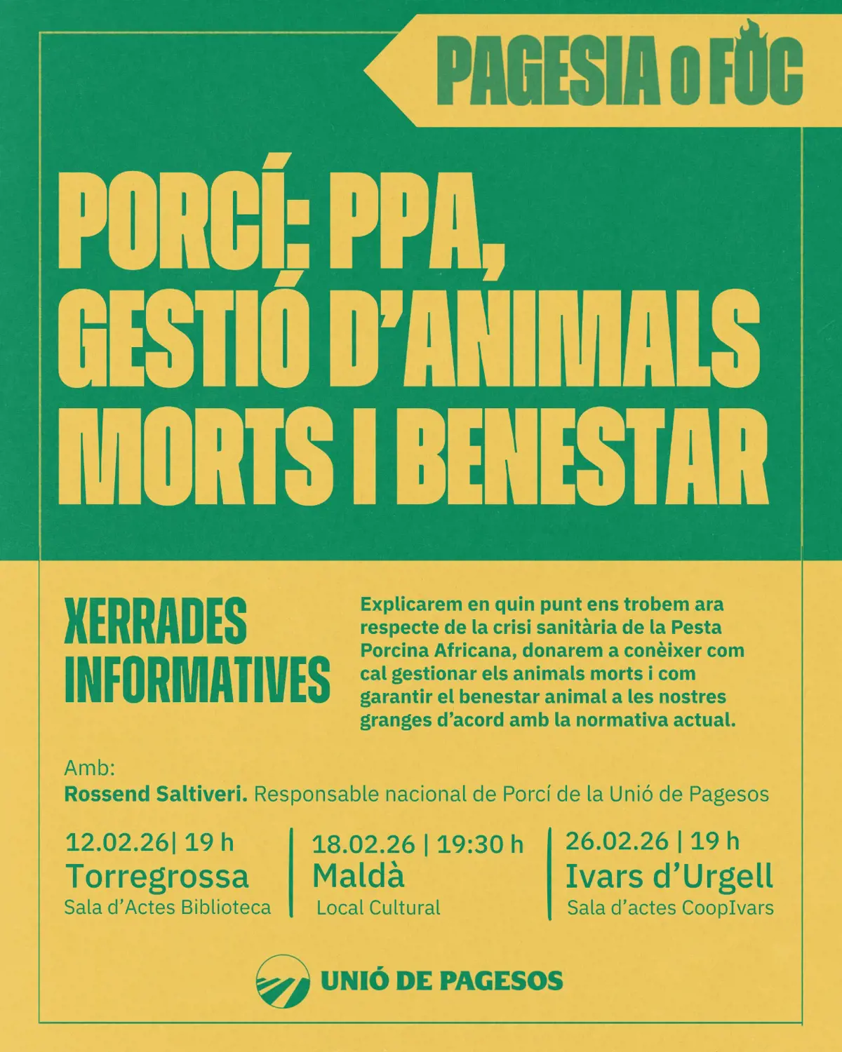 Xerrades informatives sector PORCÍ: PPA, GESTIÓ D’ANIMALS MORTS I BENESTAR ANIMAL.