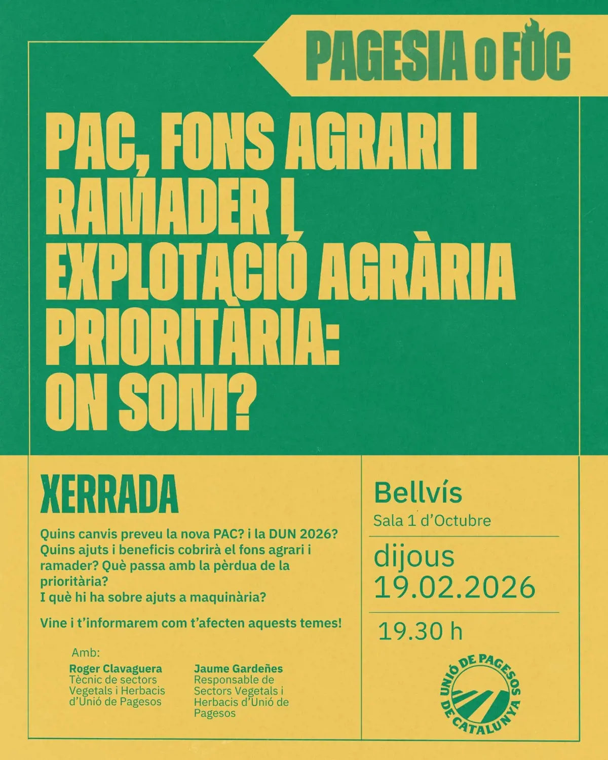 Posa’t al dia de la nova campanya, de les noves ajudes en maquinària i prioritària i de la DUN 2026
