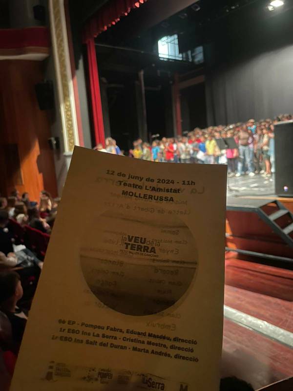 Ahir, dimecres 12 de juny, es va celebrar a l’Amistat de Mollerussa la cantata “La Veu de la Terra”. Van col·laborar els alumnes de primer de l’INS La Serra, amb representació de Bellvís i els alumnes de 6è del Pompeu Fabra i 1r ESO de l’INS Salt del Duran. Dirigia per Cristina Mestre, Eduard Masdéu i Marta Andrés.