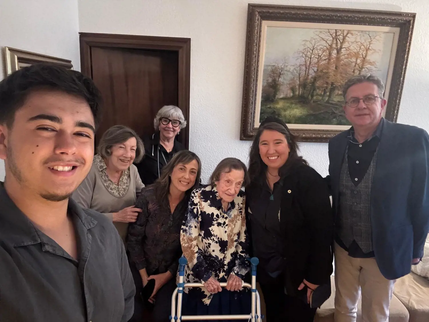 Li hem portat uns obsequis perquè l’apropin al nostre poble que també és el seu: un lot de productes de la terra i una placa. S’acomiada de nosaltres dient: “Què bé, m’heu portat aire de Bellvís”. Avui, celebrem la vostra vida Angelina!